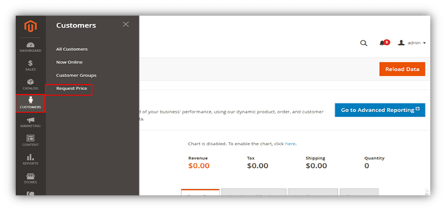 Go To Magento 2 Admin And Find Request Price Under Customers Menu In Left Panel.